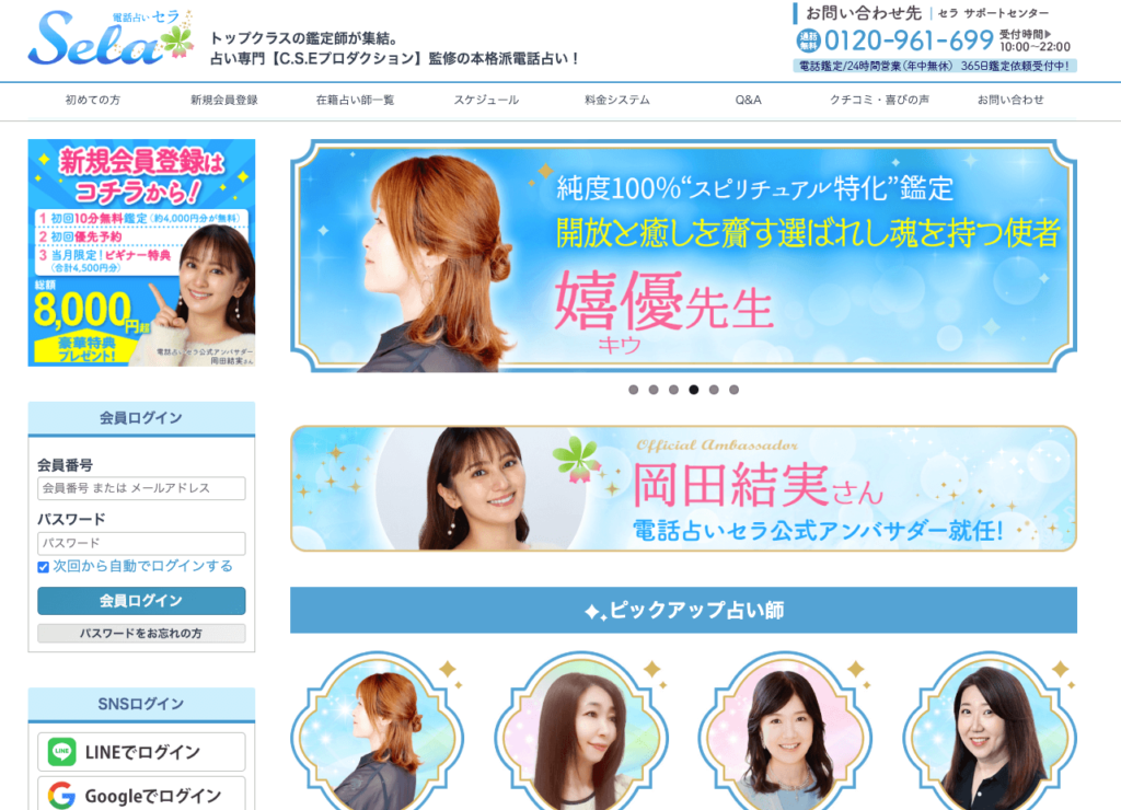 - 採用率5%以下の厳格な審査を通過した占い師70名以上が在籍。