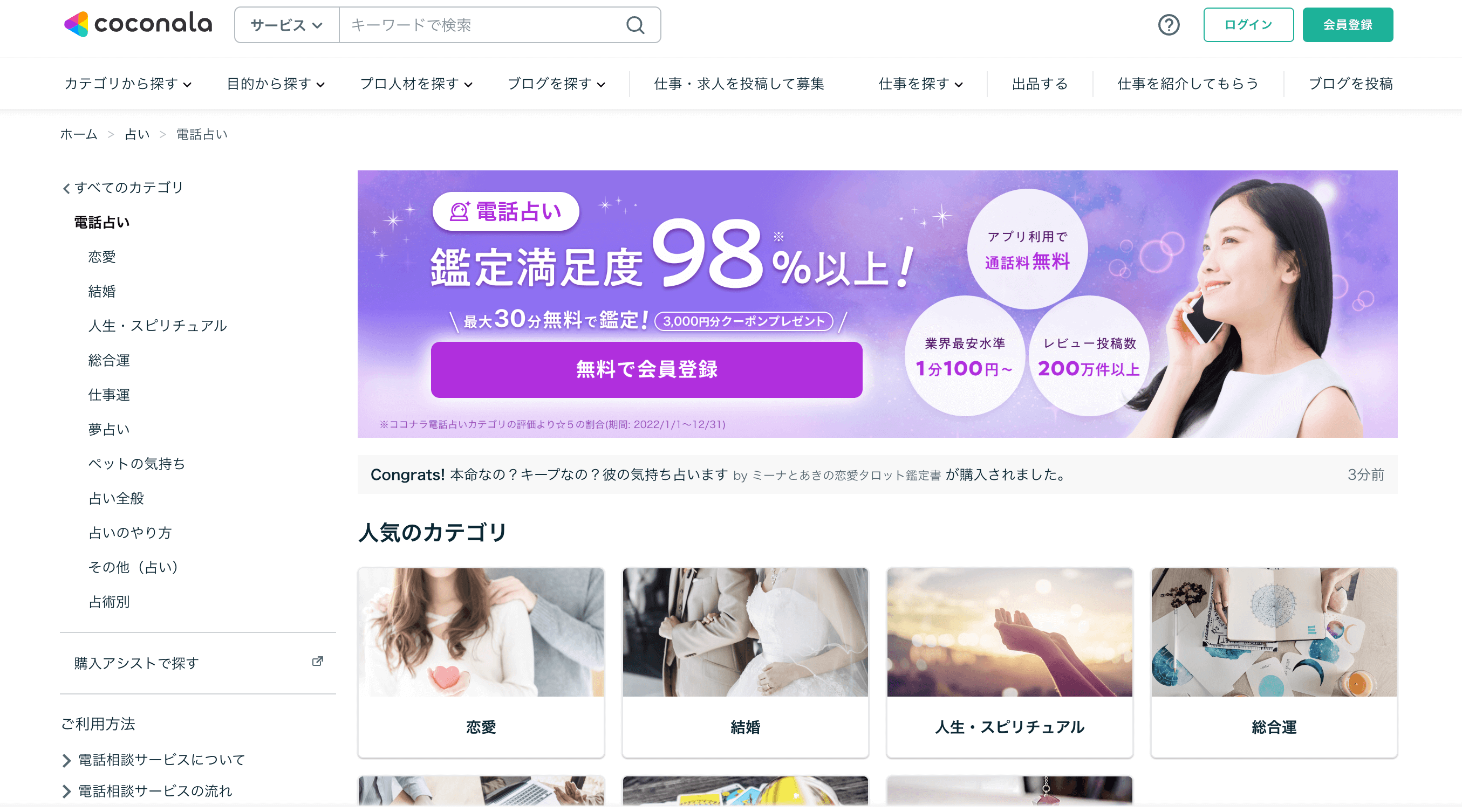 はじめての方でも安心して利用できるよう、ココナラ電話占いの始め方・やり方・口コミ情報をわかりやすく解説していきます。
